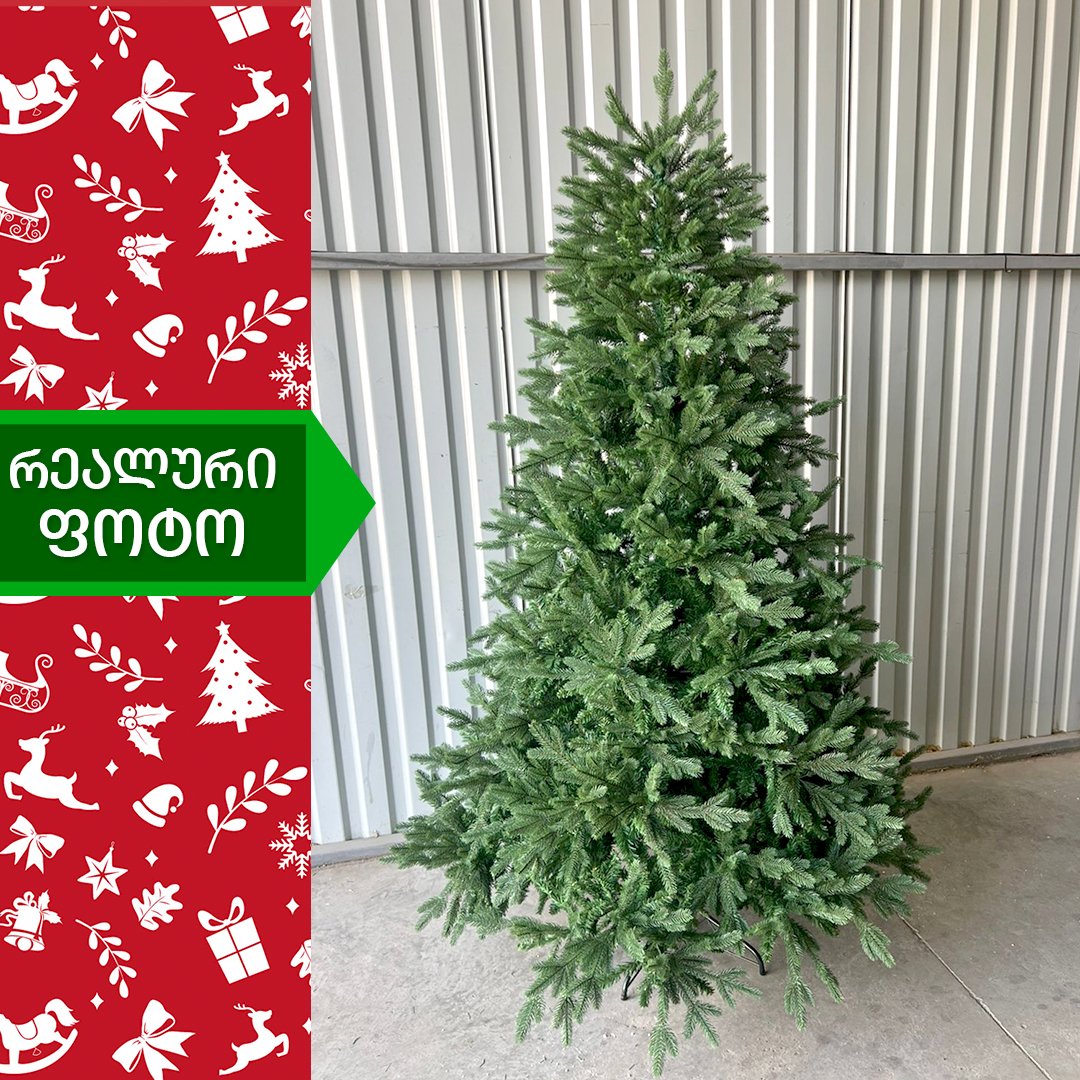 ბუნებრივის მსგავსი ნაძვის ხე,  დრეკადი მეტალის ტოტებით და ჯანმრთელობისთვის უსაფრთხო მასალისგან დამზადებული შერეული ორი სახეობის სილიკონის და PVC წიწვით . მეტალის მყარი სადგამით და მთავარი ღერძით.