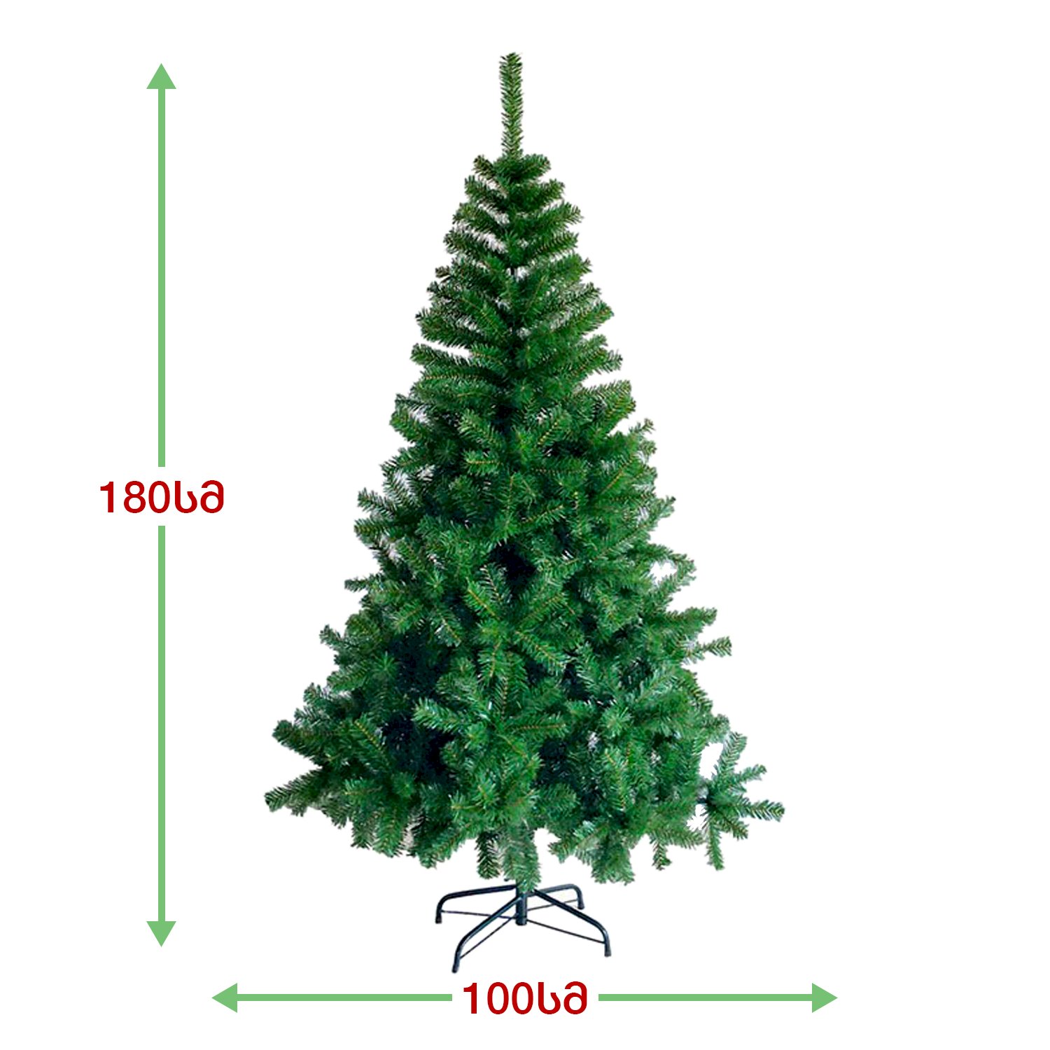 ნაძვის ხე გამძლე დრეკადი მეტალის ტოტებით და ჯანმრთელობისთვის უსაფრთხო მასალისგან დამზადებული წიწვებით. მეტალის მყარი სადგამით და მთავარი ღერძით.