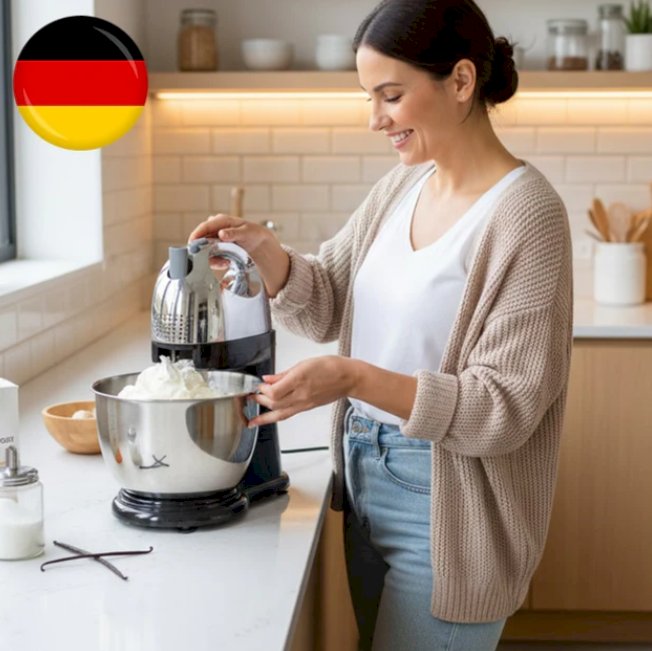 • აქსესუარები: 2 ცომის მოსაზელი კაუჭი; სადღვები; ჯამი; მიქსერის სადგამი
